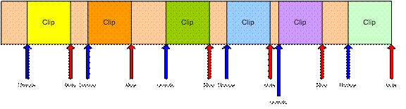 For example, to identify a clip with a clip ID of 1, the author inserts a MIDI controller event with controller=103 and value=65 at the start of the clip and another event with controller=103 and value=1 at the end of the clip. When the JET_TriggerClip() function is called with a clip ID of 1, the track will be un-muted when the controller value 65 is encountered and muted again when the controller value 1 is encountered.