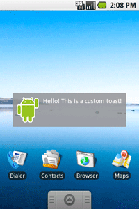 This example demonstrates everything you need for most toast notifications. You should rarely need anything else. You may, however, want to position the toast differently or even use your own layout instead of a simple text message. The following sections describe how you can do these things.