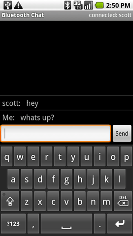 two-way text chat over Bluetooth. It demonstrates all the fundamental Bluetooth